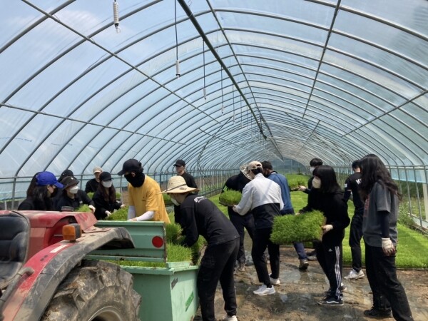 이번 농촌봉사활동은 코로나19의 장기화에 따라 일손 부족이 심화된 농가를 돕고자 기획했으며 모내기 철을 맞이해 고삼농협 육묘장에서 모판 나르기 활동을 했다.