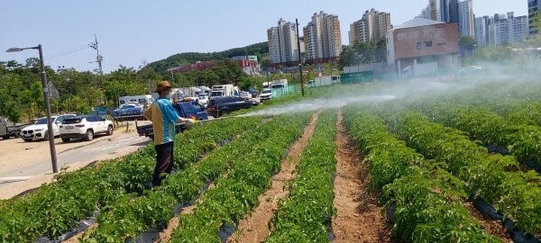 이번 관수 작업은 관내 저소득층 및 홀몸 어르신 등 어려운 이웃을 위해 기부할 예정인 감자와 태전동 아름다운 거리 조성 차원에서 식재한 꽃에 물을 줬다.