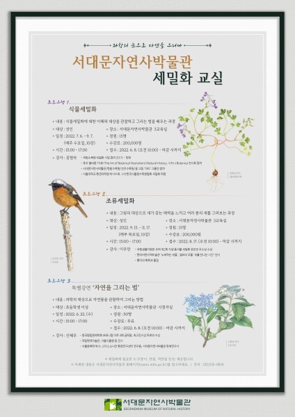 ‘식물세밀화 과정’과 ‘특별 강연’은 이달 8일 오전 10시부터, ‘조류세밀화 과정’은 오는 8월 17일 오전 10시부터 박물관 홈페이지를 통해 선착순 모집한다.