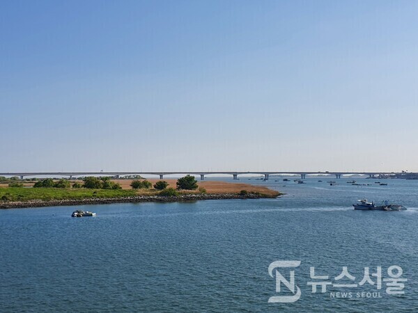 사진은 낙동강하굿둑에서 촬영한 을숙도와 을숙도대교의 모습이다.