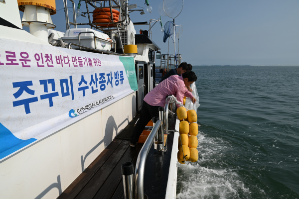 방류 해역: 인천 영종도, 영흥도, 강화도이번에 방류하는 주꾸미는 인천시 수산자원연구소에서 약 50일 동안 대량 생산 양식 기술을 통해 생산된 것으로 전염병 검사를 합격한 건강한 수산종자다.