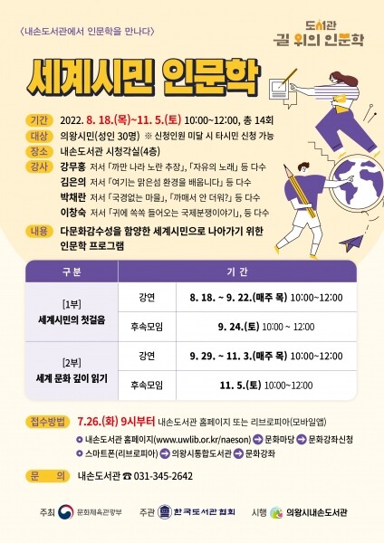 강의 신청은 26일 오전 9시부터 내손도서관 홈페이지에서 가능하며 의왕시민 30명을 선착순으로 모집한다.