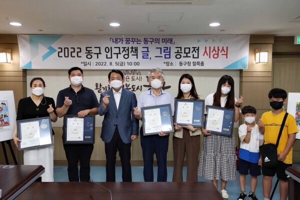 구는 글, 그림 등 접수된 작품을 내·외부 위원으로 구성된 인구정책위원회의 공정한 심사를 거쳐 글 5편, 그림 3편 총 8개의 수상작을 선정해 상장과 함께 동구사랑 상품권을 수여했다 수상작들은 동구민의 긍지를 가지는 내용 및 인구 유입을 위한 대책과 개선 방향 등 여러 가지 참신한 의견들이 있었으며 제안 내용을 적극적으로 검토해 정책에 반영하고 구정 홍보 등에 활용할 예정이다.