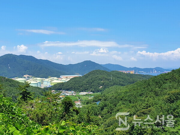 사진은 지난 7월 29일 오후 경남 통영시 광도면에 있는 공얄등산 임도 정상에서 필자가 촬영한 광도면과 면화산, 고성 장좌리 조선특구의 모습이다.