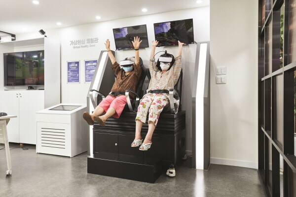 모션 인식 게임을 하는 ‘증강현실체험관’에서는 어르신들이 직접 몸을 움직이는 활동을 하면서 인지능력과 운동능력을 향상시킬 수 있다.