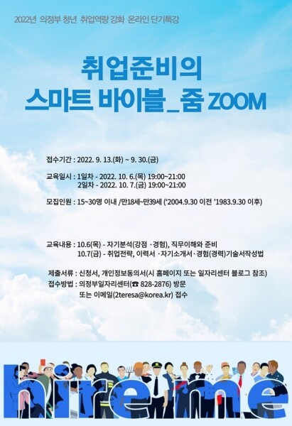 본 특강에 참여를 원하는 청년 구직자는 의정부시 홈페이지, 의정부일자리센터블로그를 참고해 메일로 지원하거나 의정부일자리센터로 직접 방문해 접수할 수 있다.