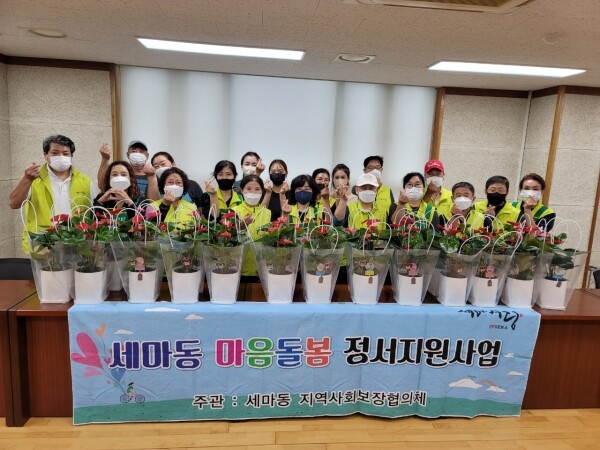 마음돌봄 정서지원 사업은 가족 또는 이웃의 왕래가 없어 정서적으로 외로움을 느낄 수 있는 위기가구에게 반려식물 등을 지원해 정서적 안정을 지원하는 민관협력 특화사업이다.