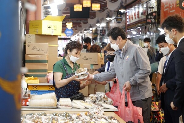 이 시장은 시장을 찾은 시민들과 만나 대화하고 경기 침체가 매출 감소로 이어져 어려움을 겪고 있는 상인들의 애로사항을 경청하고 격려했다.