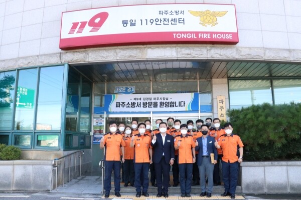 이번 일정은 파주소방서 안전센터 및 구급대를 방문해 현장대원들을 격려하는 자리를 가진 뒤 과/단장들과 인사 후 파주시장과 파주소방서장 간담회 순으로 진행됐다.