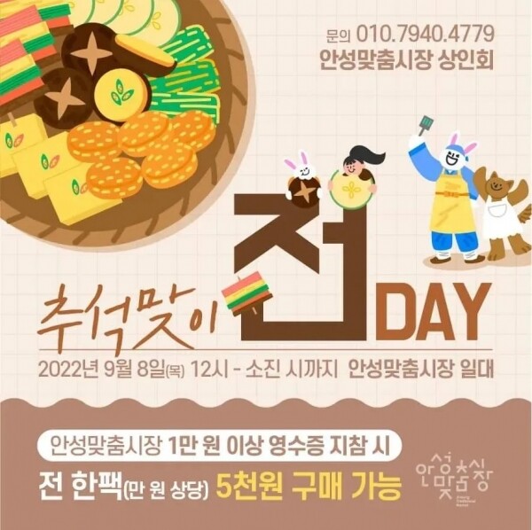 상인회 관계자는 “추석명절을 맞이해 시민들에게 믿을 수 있는 좋은 재료를 엄선해 전을 저렴하게 판매하니, 안성의 전통시장에서 장도 보고 선물도 받아 가시길 바란다”며 시민들의 많은 참여를 부탁했다.