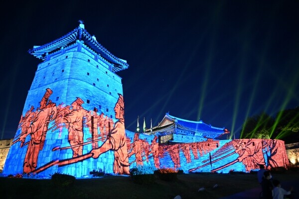 화서문을 배경으로 초대형 미디어파사드 쇼를 진행해 관람객들의 눈길을 사로잡았다.