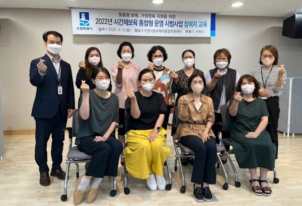 한편 수원시는 ‘시간제 보육 통합형 시범사업’을 원활하게 추진하기 위해 지난 5일 영통구 수원시동부육아종합지원센터 회의실에서 ‘2022년 시간제 보육 통합형 운영 시범사업 참여자 교육’을 열었다.