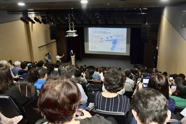 더 나은 주거환경에 대한 주민들의 관심을 반영하듯, 신당누리센터 대강당에는 400명 이상의 인파가 몰려 발 디딜 틈이 없었다.