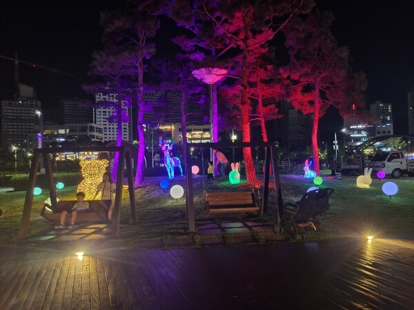 특히 공원 야외무대 쪽에는 글자를 형상화한 벤치와 터치블록을 설치함으로써 산책하는 시민들에게 야간경관을 제공하면서 재미를 느낄 수 있는 상시 놀이공간을 조성했다.