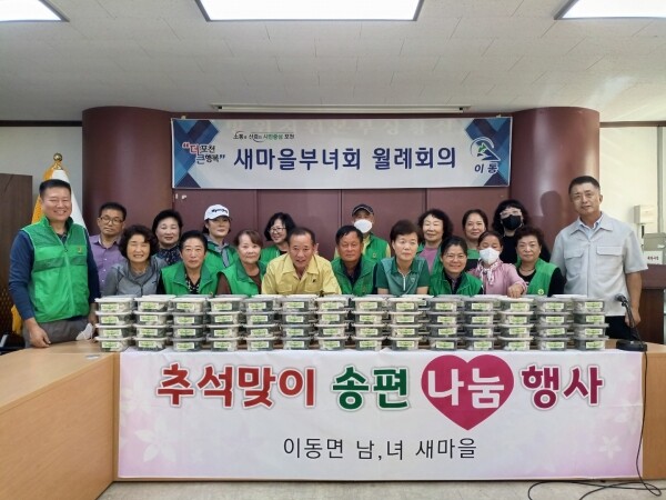 이날 행사에는 이동면 남녀 새마을지도자회원 등 20여명이 모여 생활이 어려운 기초수급자 및 차상위계층, 홀몸 어르신 등 100여 가구에 송편을 전달했다.