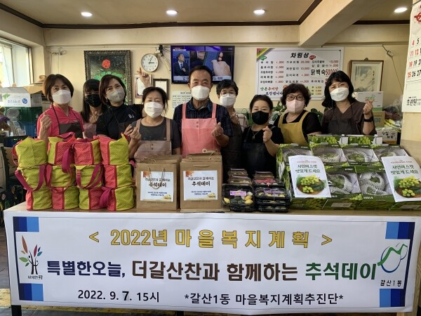 정문숙 갈산1동 지역사회보장협의체 위원장은 “갈산1동 복지사각지대 이웃들이 쓸쓸하지 않은 한가위를 보낼 수 있도록 과일과 떡도 준비했다”며 “더갈산찬도 추석에 주로 먹는 음식으로 메뉴를 선정했다”고 말했다.