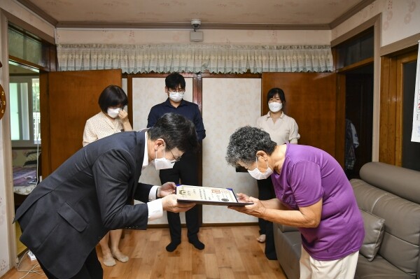 김병수 시장은 이날 오후 고 명제관 선생 외손녀 저택을 방문해 “독립유공자들께 명예롭고 편안한 삶을 드리는 것은 국가와 시의 무한한 책임”이라며 이영자님께 대통령 표창을 전달했다.