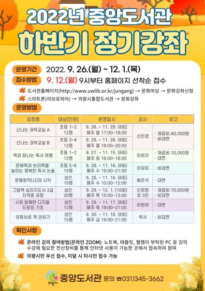 최석주 도서관정책과장은 “시민에게 다양한 문화경험을 제공하고 디지털 기반의 독서 생활화를 독려하기 위한 강좌들을 개설했으니 많은 참여를 바란다”고 말했다.