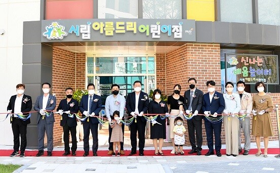 시립 아름드리어린이집은 올해초 LH와 무상임대차 협약을 맺고 7~8월 리모델링 후 9월 1일부터 운영중으로 초롱꽃마을 3단지 내 위치한 지상 2층, 총연면적 908.48㎡, 보육정원 108명인 보육시설로 타원형 형태의 어린이집으로 중앙에 중정이 있는 파주시 최초 특색있는 시립어린이집이다.