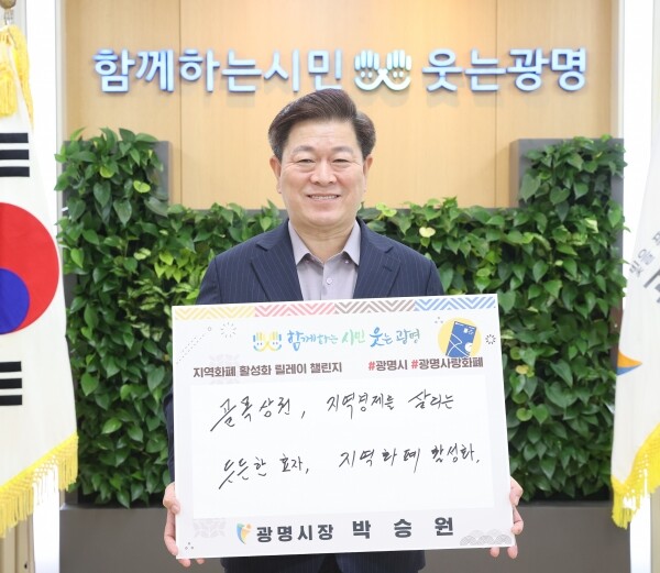 박승원 광명시장은 이날 ‘골목상권과 지역경제를 살리는 든든한 효자, 지역화폐 활성화’ 문구와 함께 챌린지 동참 인증 사진을 개인 SNS에 올리며 “전통시장과 골목상권, 지역경제를 살리는 데 톡톡히 역할을 하고 있는 지역화폐에 대한 지원은 멈추면 안 된다”고 호소했다.