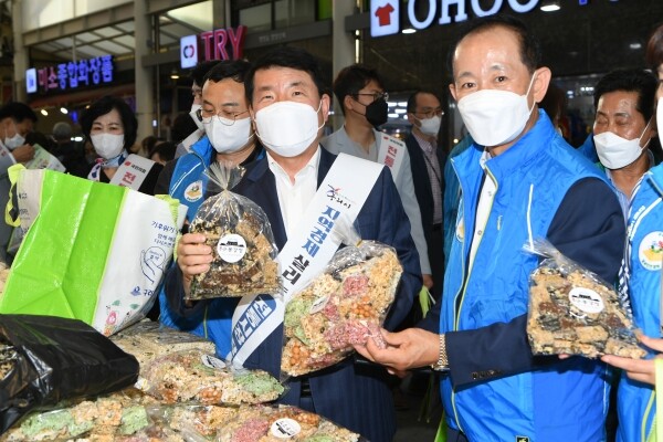 백경현 시장은 전통시장 구석구석을 둘러보며 온누리상품권을 이용해 떡, 채소, 과일 등 제수용품과 생필품을 구매하며 상인들의 노고를 위로하고 덕담을 나눴다.