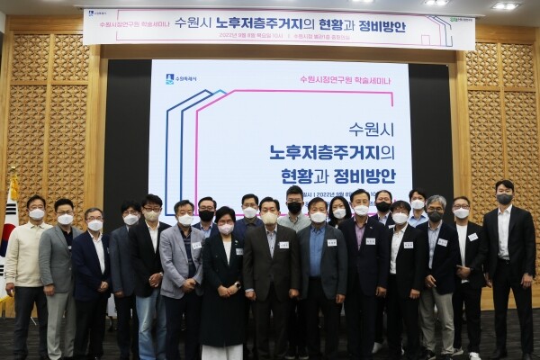 수원시, ‘노후저층주거지 해결’을 위한 현황과 정비방안 모색 수원시정연구원, ‘수원시 노후저층주거지의 현황과 정비방안’을 위한 학술세미나 개최 수원시정연구원은 9월 8일 수원시청 중회의실에서 ‘수원시 노후저층주거지의 현황과 정비방안’을 위한 학술세미나를 열고 수원시 노후저층주거지 현황 및 실태를 진단하고 노후저층주거지 개선을 위한 정비방향과 정비수단으로 가로주택정비사업 적용방안 등을 논의했다.