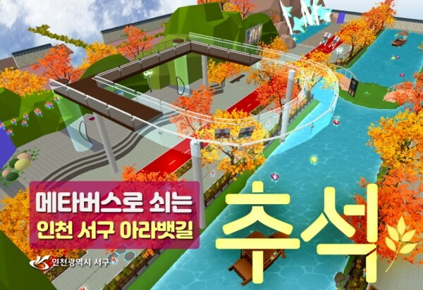 다가오는 9일부터 운영되는 아라뱃길 추석테마 메타버스에서 이용자들은 실제 아라뱃길을 구현한 메타버스 안을 체험하며 투호, 강강술래 같은 추석 전통 놀이를 하거나, 바닥이 투명한 구름다리 등에서 포토존 인증샷을 찍는 등, 여러 즐길 거리에 참여할 수 있다.