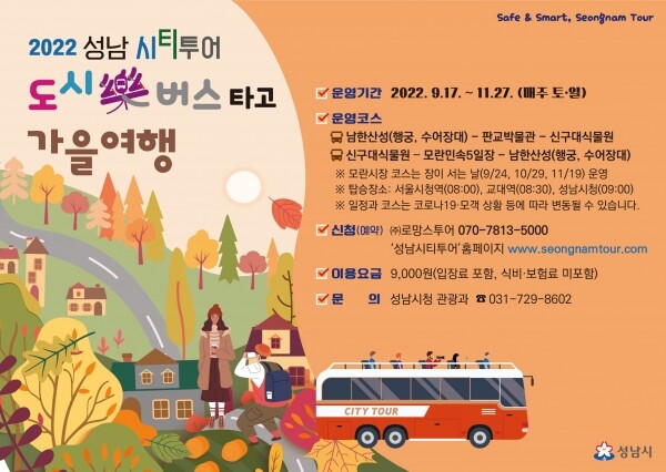 예약은 성남 시티투어 홈페이지나 운영업체인 ㈜로망스투어로 하면 된다.