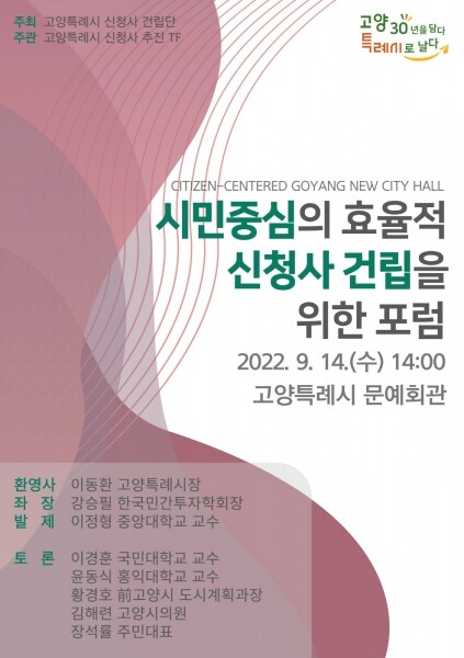 시 관계자는 “이번 포럼을 통해 시민과 전문가들이 한 자리에 모여 심도 있는 토론을 진행함으로써 시민의 목소리를 더욱 가까이서 듣고 시민과 함께 청사의 밑그림을 그릴 수 있는 기회가 될 것으로 기대한다”고 전했다.