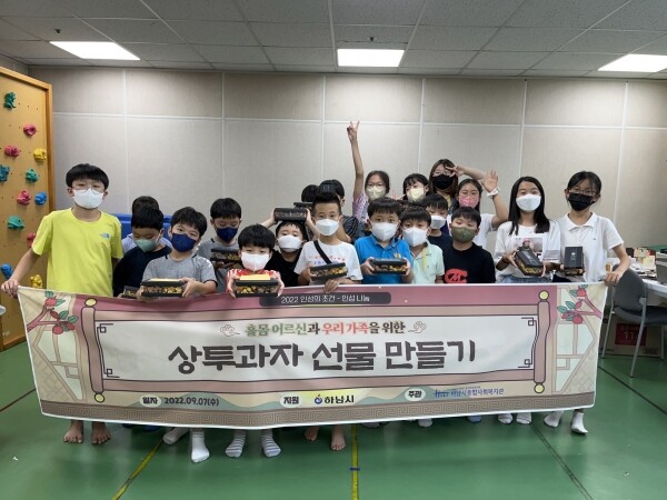 아동들은 홀몸어르신을 위해 작성한 편지와 함께 직접 만든 상투과자를 ‘추석맞이 선물키트’로 포장했다.