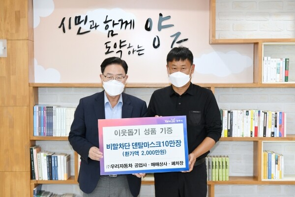 이날 전달식에는 강수현 양주시장, ㈜우리자동차 우형근 대표 및 최병남, 우지인 이사가 참석했으며 기부 받은 비말차단 덴탈마스크는 취약계층에 전달될 예정이다.