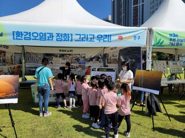 중구에서는 제3회 푸른 하늘의 날을 맞아 인천시청 애뜰광장에서‘‘환경오염과 정화’, 그리고 우리’라는 테마로 기후변화 사진전시, 환경관련 퀴즈 이벤트를 비롯해 탄소중립 및 환경 홍보 캠페인을 실시해 환경의 중요성을 알리고 기후변화에 대한 이해에 관심을 높였다.