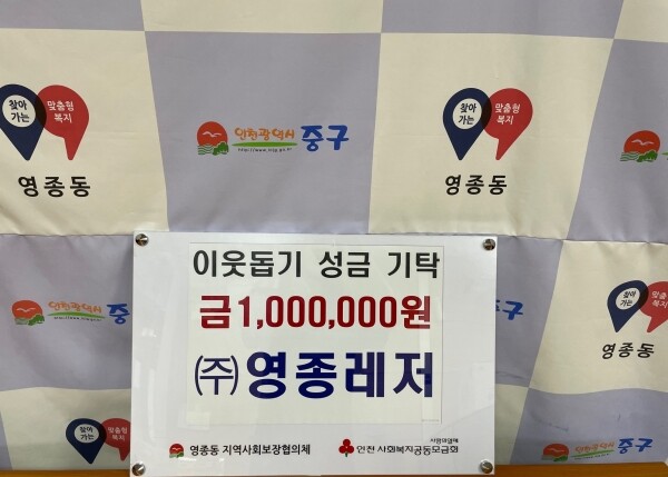 이번에 기탁된 성금은 인천사회복지공동모금회를 통해 접수 후 영종동지역사회 보장협의체의 취약계층 지원을 위한 복지사업 기금으로 사용될 예정이다.