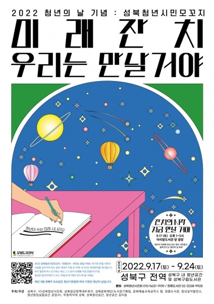 그리고 어려운 현실 속에서도 낙관적 비전을 수립하고자 2022 성북청년시민모꼬지의 슬로건은 ‘미래잔치 : 우리는 만날 거야’로 정해, 주요 프로그램은 청년들 스스로 미래를 육하원칙으로 구상할 수 있는 내용으로 구성했다고 밝혔다.