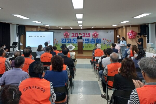 이날 주민총회에서는 관고동 주민자치회 2022년 활동 경과를 보고하고 올해와 내년에 실시할 관고동 주민자치 사업의제 총 8건에 대한 투표와 2023년 관고동 주민자치계획 및 주민참여예산에 대한 설명을 진행했다.
