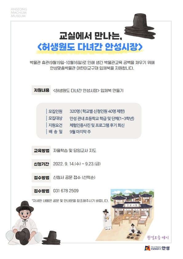안성맞춤박물관 관계자는 “이번 ‘허생원도 다녀간 안성시장’ 교구재를 통해 학생들의 문화체험의 빈 자리를 조금이나마 충족하고 자신이 살고 있는 고장의 옛 문화에 대해 관심을 가질 수 있는 기회가 되길 바란다”고 전했다.