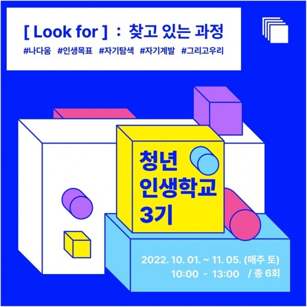 인생학교 3기는 10월 1일부터 11월 5일까지 매주 토요일 오전 10시부터 오후 1시까지 진행되며 기존 1기, 2기와는 다르게 ‘나다움’ 뿐만 아니라 ‘우리다움’을 찾는 과정이 추가됐다.