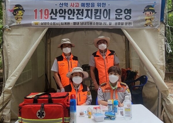 남양주소방서는 최근 등산 인구의 증가에 따른 산악사고를 사전에 예방하고자 이번 달 3일부터 다음 달 30일까지 매주 주말 및 공휴일에 천마산, 수락산, 예봉산에서 ‘가을철 산악안전 지킴이’를 운영한다.