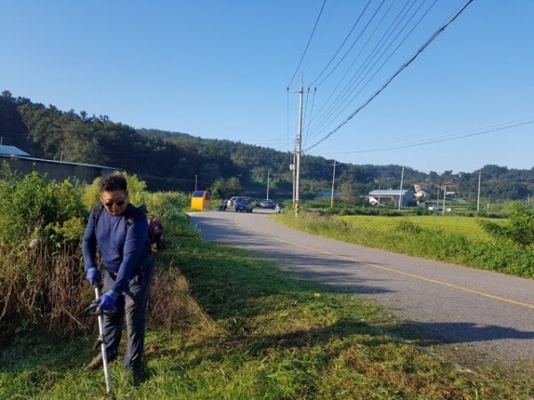 이번 작업은 이장단 10여명이 참석한 가운데 꽃나무 사이에 엉켜있는 잡풀을 제거하고 도로변에 버려진 생활쓰레기를 수거하며 진행됐다.