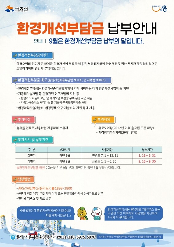 환경개선부담금은 매년 3월과 9월 후불제로 부과되며 이번 부담금 납부 기한은 9월 16일부터 30일까지다.