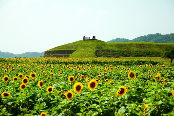 해바라기가 다소 늦게 심어진 만큼 이달부터 호로고루를 배경으로 광활하게 펼쳐진 해바라기 밭을 감상할 수 있다.