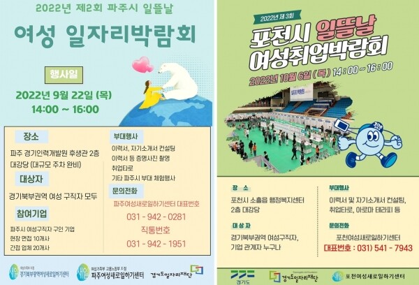 이번 박람회는 경기북부 구인기업 수십여 곳이 참여한 가운데 대면으로 진행되며 오는 22일 파주시 경기인력개발원과 다음 달 6일 포천시 소홀읍행정복지센터에서 각각 열린다.