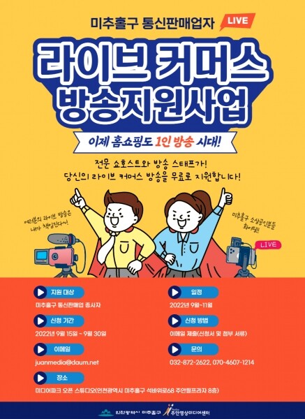 남두현 주안영상미디어센터장은 “지역소상공인을 위한 지원 사업은 코로나19 팬데믹 이후 어려움을 겪는 통신판매업자를 실질적으로 돕기 위한 방안으로 추진됐다”며 “이번 사업을 통해 온라인 판매에 진입장벽을 느꼈던 분들 고민이 해결되길 바란다”고 말했다.