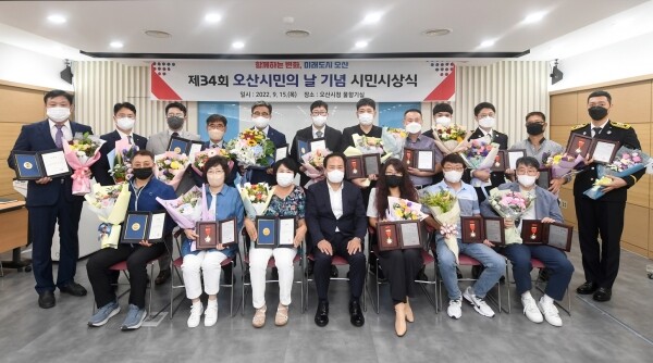시정발전에 기여한 시민에게 수여하는 오산시장상은 시정발전 분야 이시영 씨, 법질서 확립 분야 이영종 씨, 농촌발전 분야 엄혜순 씨, 사회복지 분야 전윤일 씨, 지역경제 분야 최순규 씨, 보건위생 분야 김희섭 씨, 환경보전 분야 김학민 씨, 문화예술 분야 이화정 씨,체육진흥 분야 이상용 씨, 재난대비 분야 신신욱 씨, 치안행정 분야 조성민 씨, 소방행정 분야 김범준 씨가 수상했다.