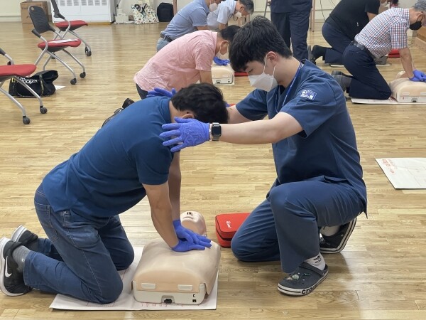 이번 교육은 가톨릭대학교 인천성모병원 응급의학과 교수 및 응급구조사가 강의를 진행했으며 심폐소생술 시행법, 자동심장충격기 사용법, 대상자별 응급처치법 등을 교육하고 직접 실습하는 시간을 가졌다.