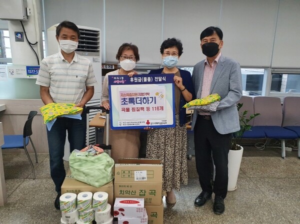 ‘초록더하기’는 봉재활동 재능기부를 통해 수제품을 만들어 어려운 이웃을 돕는 활동을 하는 봉사단체로서 올해 상반기에 소창 손수건과 행주 200개를 기부한 바 있다.