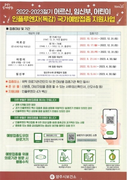 시 관계자는 “독감 예방접종은 접종 2주 후부터 효과가 나타나고 평균 6개월 정도 유지되므로 적기에 접종하는 것이 중요하다”고 당부했다.