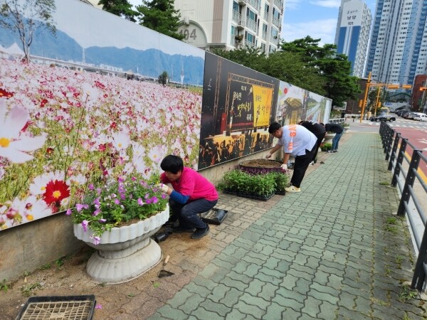 이번 가을꽃 식재 행사에는 행정복지센터 직원, 기간제근로자, 사회복무요원 등 총 6명이 참여했다.