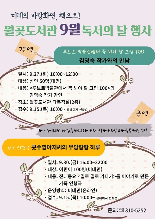 이외에도 가족 인형극 ‘콧수염 아저씨의 우당탕탕 하루’ 공연을 온라인으로 만나볼 수 있으며 북 큐레이션 "명화로 읽는 미술사", 가족애를 느낄 수 있는 원화 전시 ‘엄마가 낮잠을 잘 때’, ‘아빠 쉬는 날’, ‘무지개 수프’ 등을 도서관 자료실 및 로비에서 감상할 수 있다.