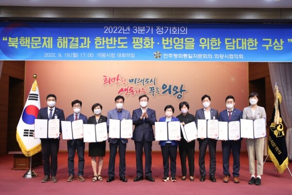 김성제 의왕시장은 축사를 통해 “20기 위원님들과 함께 한반도 평화증진을 위해 큰 역할을 기대한다”며 “민선8기를 맞이한 시에서도 평화통일의 기반을 더욱 더 탄탄히 할 것”이라고 말했다.